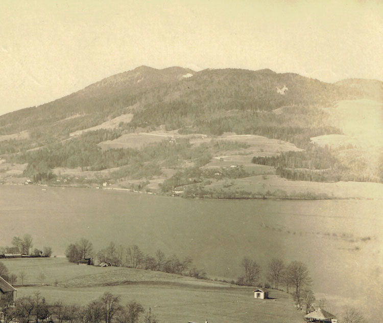 Auf dieser Photographie um 1920 sieht man, wie abgelegen Gustav Mahlers Komponierhäuschen am Seeufer lag.