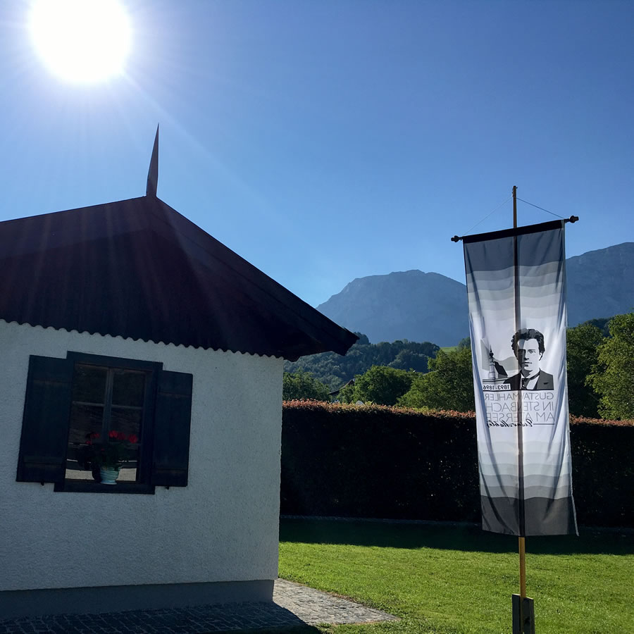 Angelehnt an das Logo des Mahler Festivals in Toblach (unten rechts), wo Gustav Mahler sein drittes Komponierhäuschen bauen ließ, entstand ein Logo für das neue Gustav Mahler Festival in Steinbach am Attersee. Hier steht Mahlers erstes Komponierhäuschen.