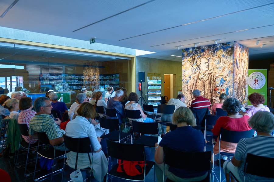 Am folgenden Morgen eine Podiumsdiskussion im Gemeindezentrum von Steinbach am Attersee.