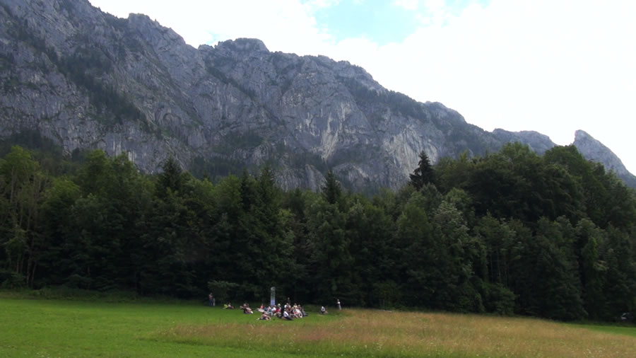 Die Idee für diese Wanderung ist es, den Inspirationsräumen, den gedanklichen und spirituellen Hintergründen zu Mahlers Dritter Symphonie nachzuspüren. Dabei erklingen die einzelnen Sätze, für die es aus verschiedenen Briefen Mahlers Hinweise gibt, die er aber nicht in die Partitur übernommen hat, an ausgewählten Orten. Die erste Hörstation liegt am Fuße eines gewaltigen Bergmassivs. Es symbolisiert hier die leblose Welt, die in Mahlers Symphonie im ersten Satz zum Leben erwacht.