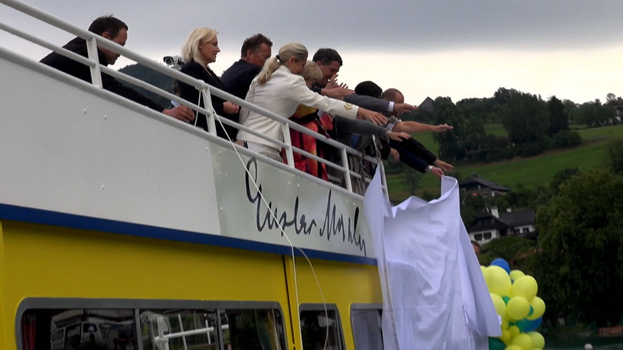 Vor der eigentlichen Schiffstaufe wird die Gustav Mahler gewidmete Gestaltung des Schiffes enthüllt, die mittels des Preisausschreibens ermittelt worden war.