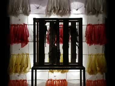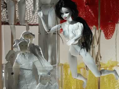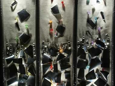 LOOPS - 5 kinetische Andachtsbilder zum Lebensgefühl der Jahrtausendwende - ist ein Animationsfilm- und Multimediaprojekt. Clicken Sie oben auf LOOPS PRODUKTIONSTAGEBUCH für ein Inhaltsverzeichnis. Die Arbeit an den Bildern ist geprägt vom handwerklichen Umgang mit verschiedensten Materialien, jede dieser technischen Lösungen muß so erdacht sein, daß sie später problemlos animiert werden kann. |