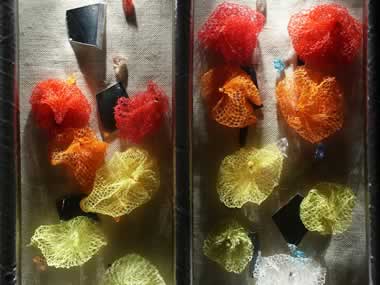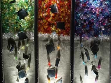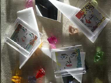 | 11.-13. MÄRZ 2005 Dreh Punkt 9: Recycling City Hintergrund. 4 Sequenzen mit weißen Teilen, Spiegelstücken und Farbsteinen auf 3 Bahnen. Jetzt fehlen noch 3 Sequenzen auf 2 Bahnen und eine auf ener Bahn als Naheinstellung. |