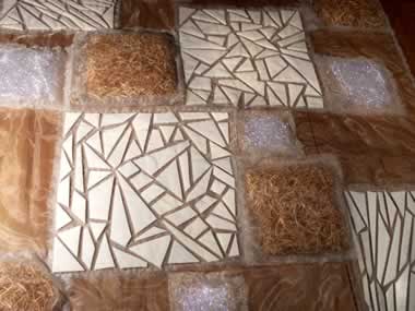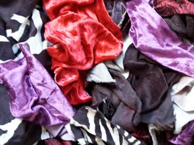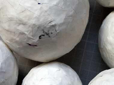 UNTEN: Klassische Papiermaché-Arbeit: Um Ballons laminiert. Aus ihnen werden die Virtual Pets schlüpfen, wenn alles gut geht. Rechts eine Sammlung von Schneiderabfällen eines bekannten Modehauses mit schönen Pannésamtresten in vielen Farben und Mustern. |