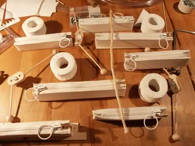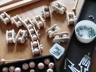 | UNTEN LINKS: 15 Kugelgelenke gemacht. UNTEN RECHTS: Kistchen von italienischer Pasta. Sie haben als Ausgangsmaterial wahrscheinlich genau die richtige Konsistenz für die Eier, aus welchen die VIRTUAL PETS schlüpfen sollen. Also doch nichts Rundes aus Papiermaché! |