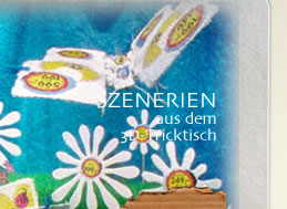 auf Wellpappe und weiße Feinwellpappe (Blumen); Käfer und Schmetterlinge: