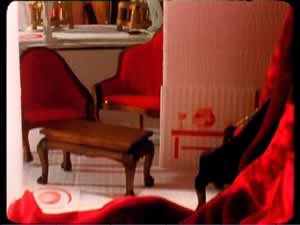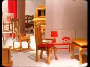 aus Kunststoff, mit Airbrush schablonierte Bilder, Puppenmöbelchen