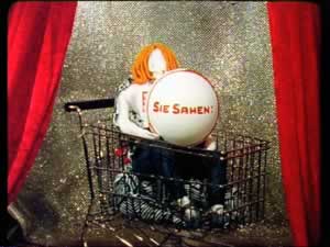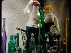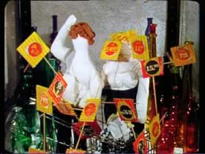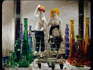 Einkaufswägelchen, Puppen aus weißem Stoff, Jeansstoff