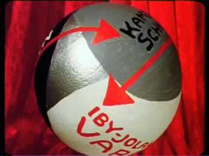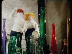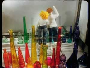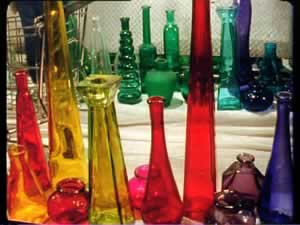 Glasflaschen, Styrokugeln und Schaumkarton mit Acrylfarbe und Acrylmetallfarbe